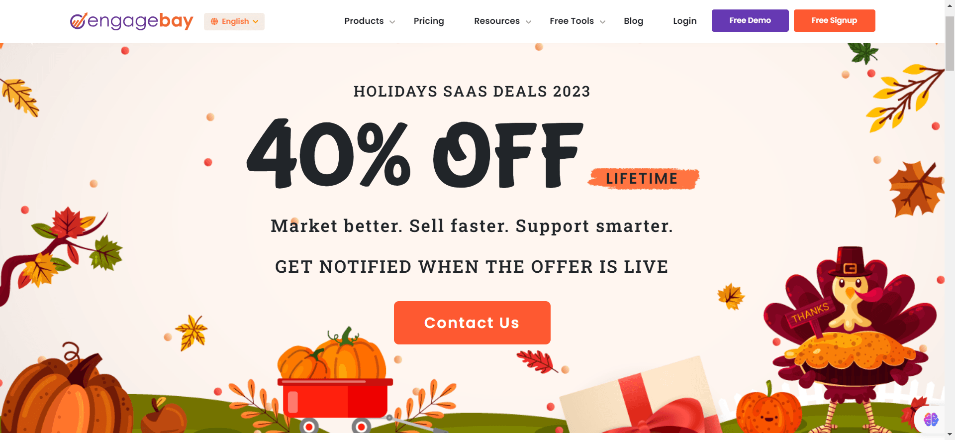 Go to EngageBay’s website, sign up for a new account, and the 40% lifetime discount will be automatically applied. It’s that easy.