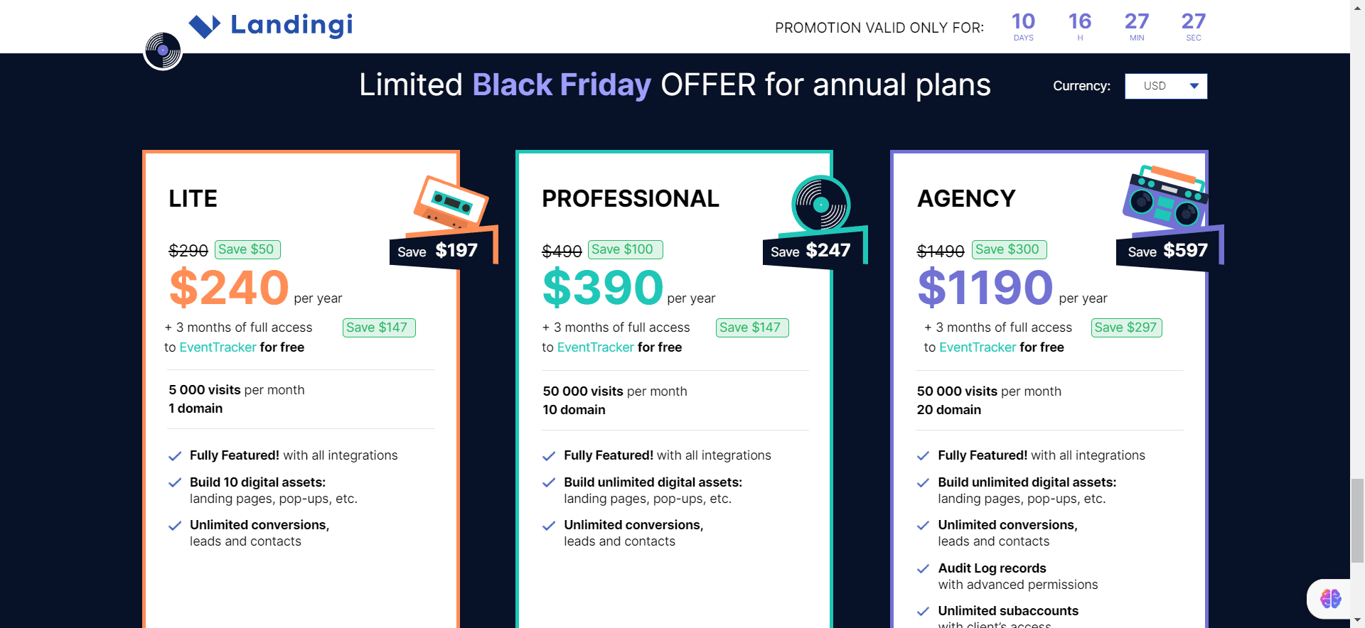 To claim your discounted annual subscription and bonus access to EventTracker, head over to the Landingi website and choose the plan that fits your needs. Remember, this deal ends on November 30th, so don’t miss out!