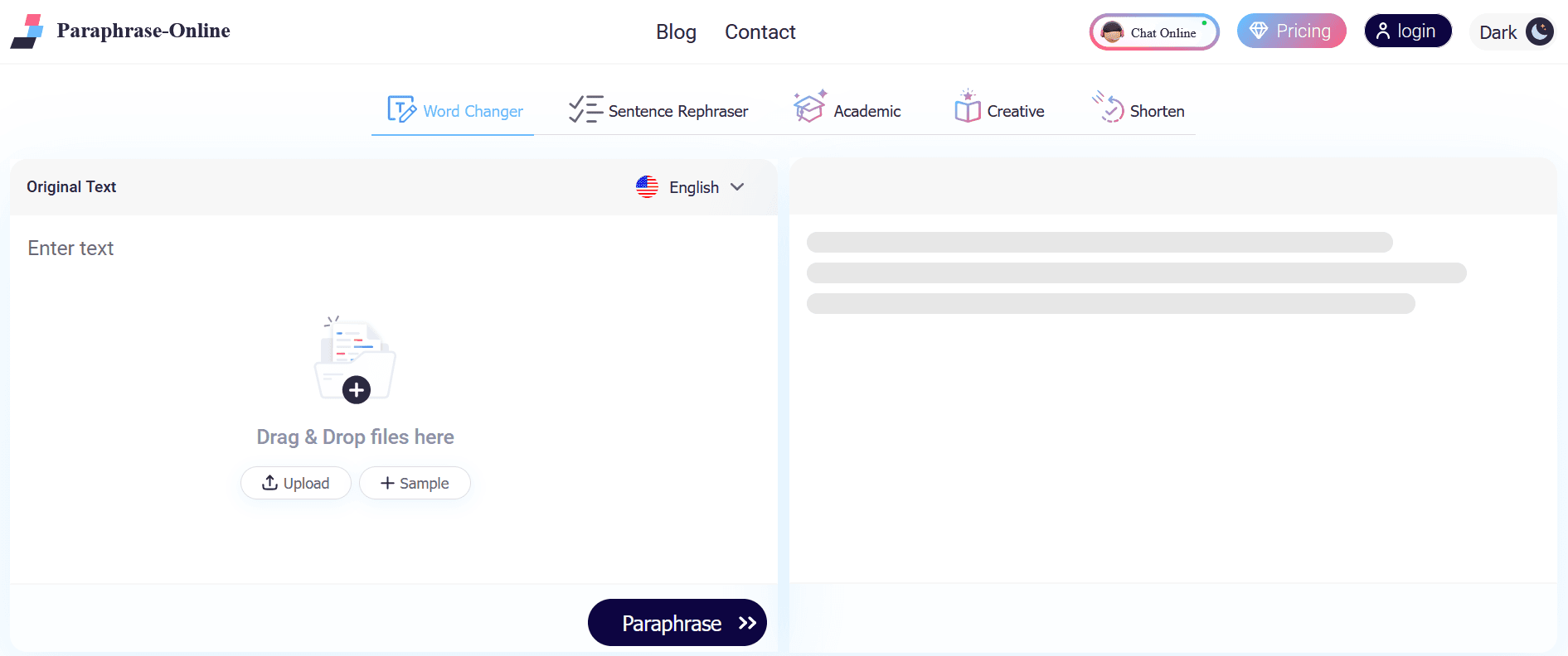 Paraphrase Online is another online reword tool that allows users to paraphrase and reword their SaaS content simultaneously, depending on what they would like to do. This tool offers a dedicated mode named “Word Changer” to introduce new and appropriate words to your content.