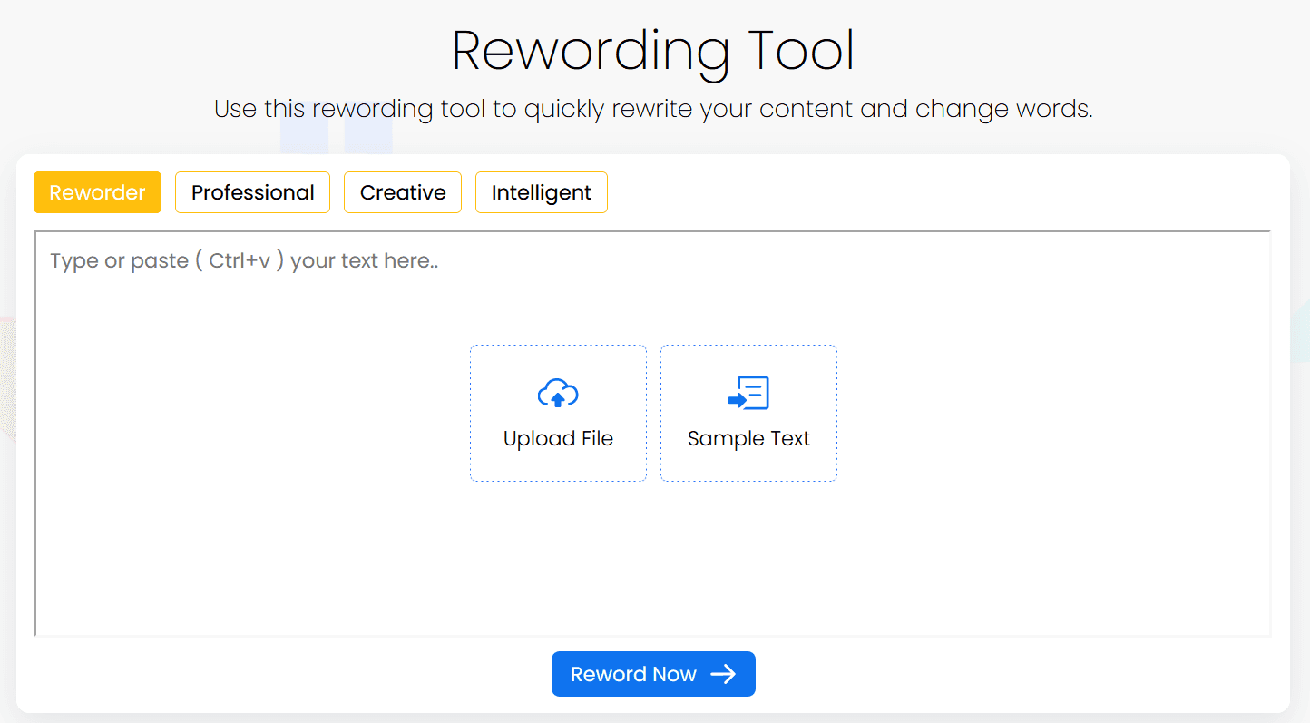 Rewording Tool offers four different rewording modes that can be used to achieve different tones in your content. These modes include “Professional,” “Creative,” and “Intelligent”.