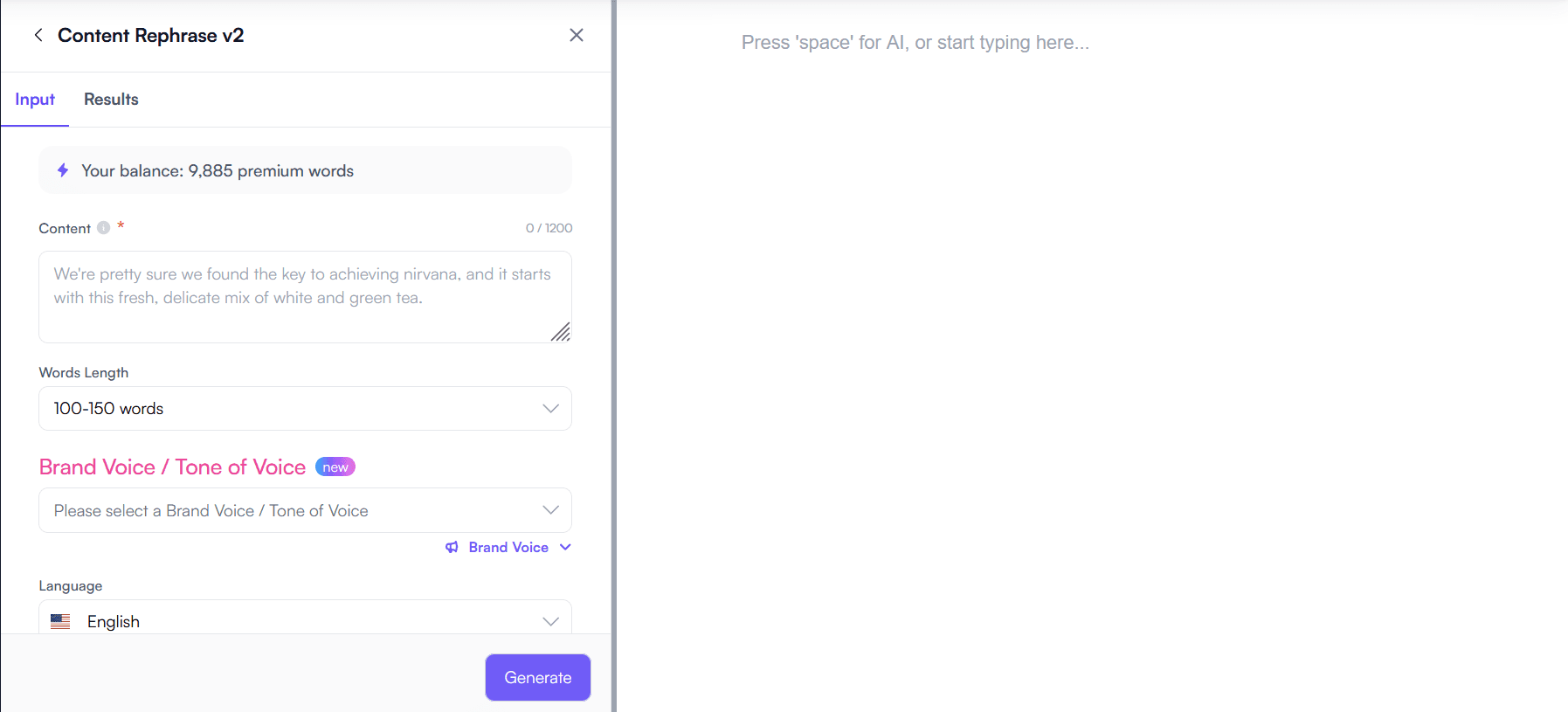 It also allows users to reword up to 2000 words in a single go and has an easy-to-understand UI.