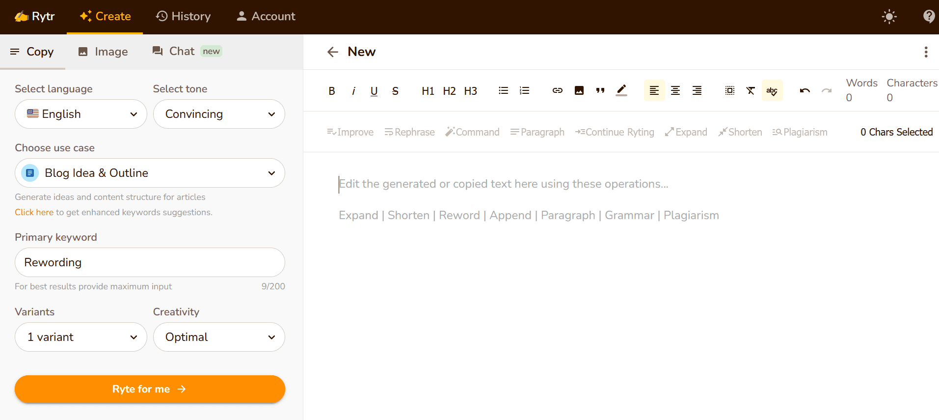 Rytr is an online content generator and editor that can create content from scratch based on the user’s need or edit already written content to improve it. Apart from this, the platform also offers tools like image generator, outline generator, SERP analysis, and many more.