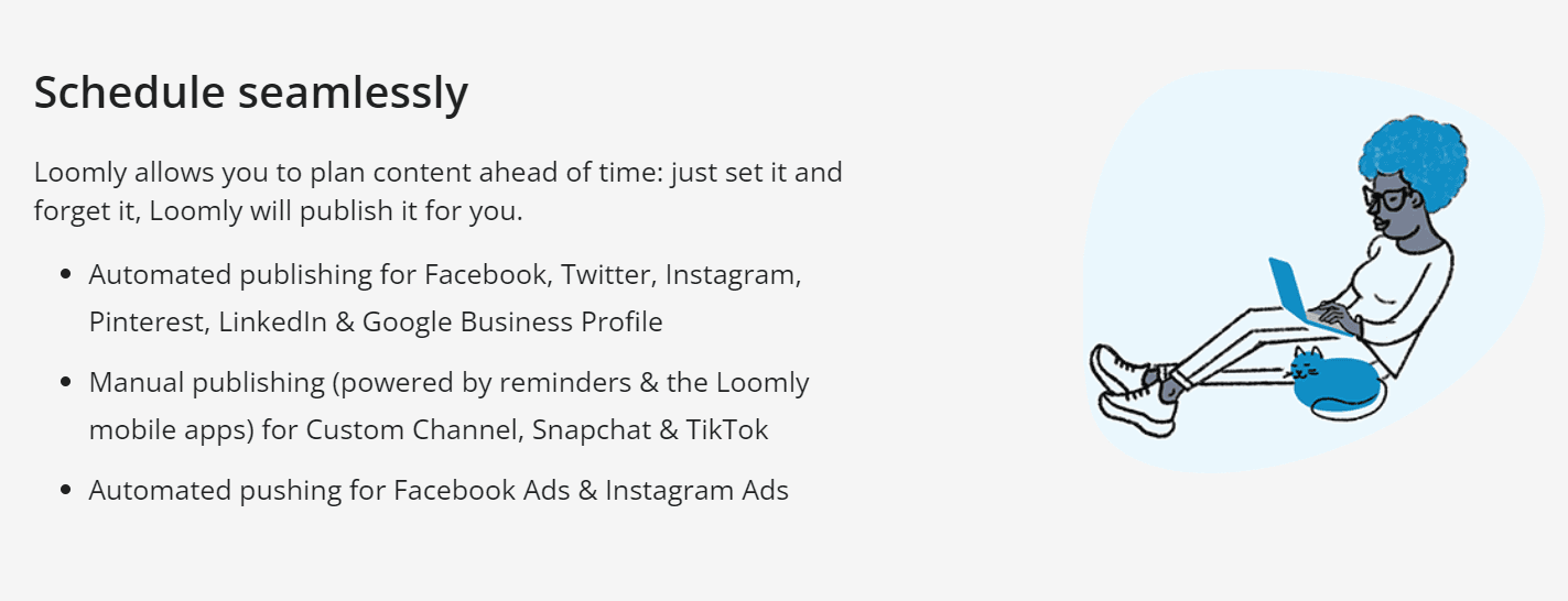 - Cross-platform scheduling: With Loomly, you can schedule posts for multiple social media platforms, including Pinterest, from a single dashboard.