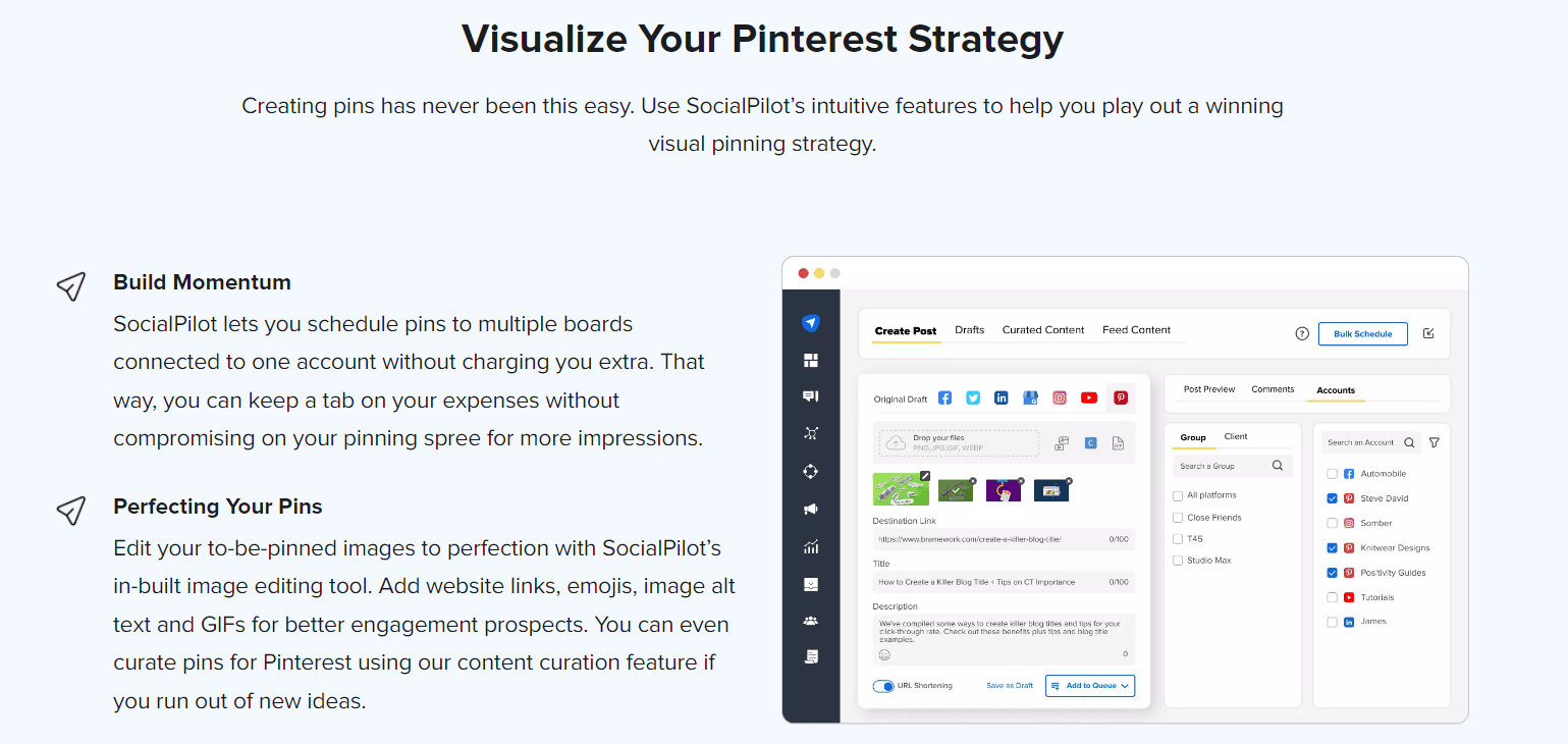 - Cross-platform scheduling: With SocialPilot, you can schedule posts across multiple social media platforms.