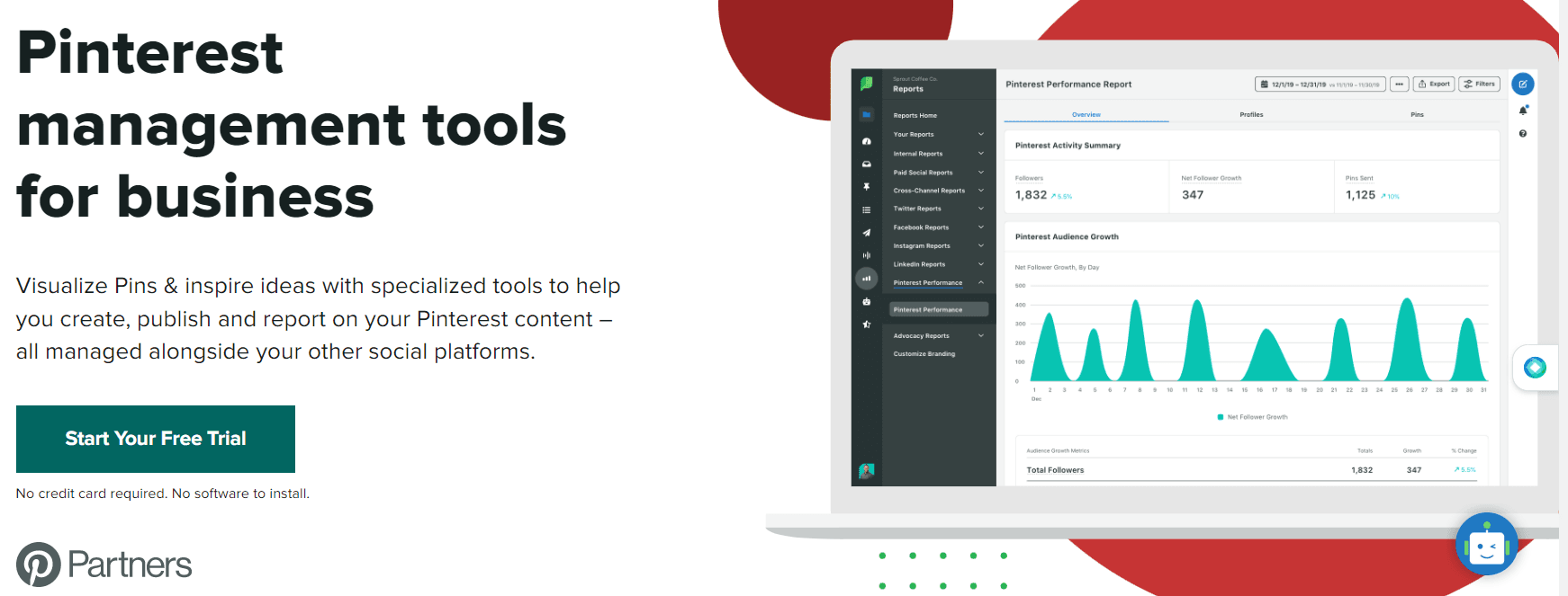 - Official Pinterest partner: Sprout Social is an official partner of Pinterest, which means that it has integrated specialized tools to help you create, publish, and report on your Pinterest content from one platform.